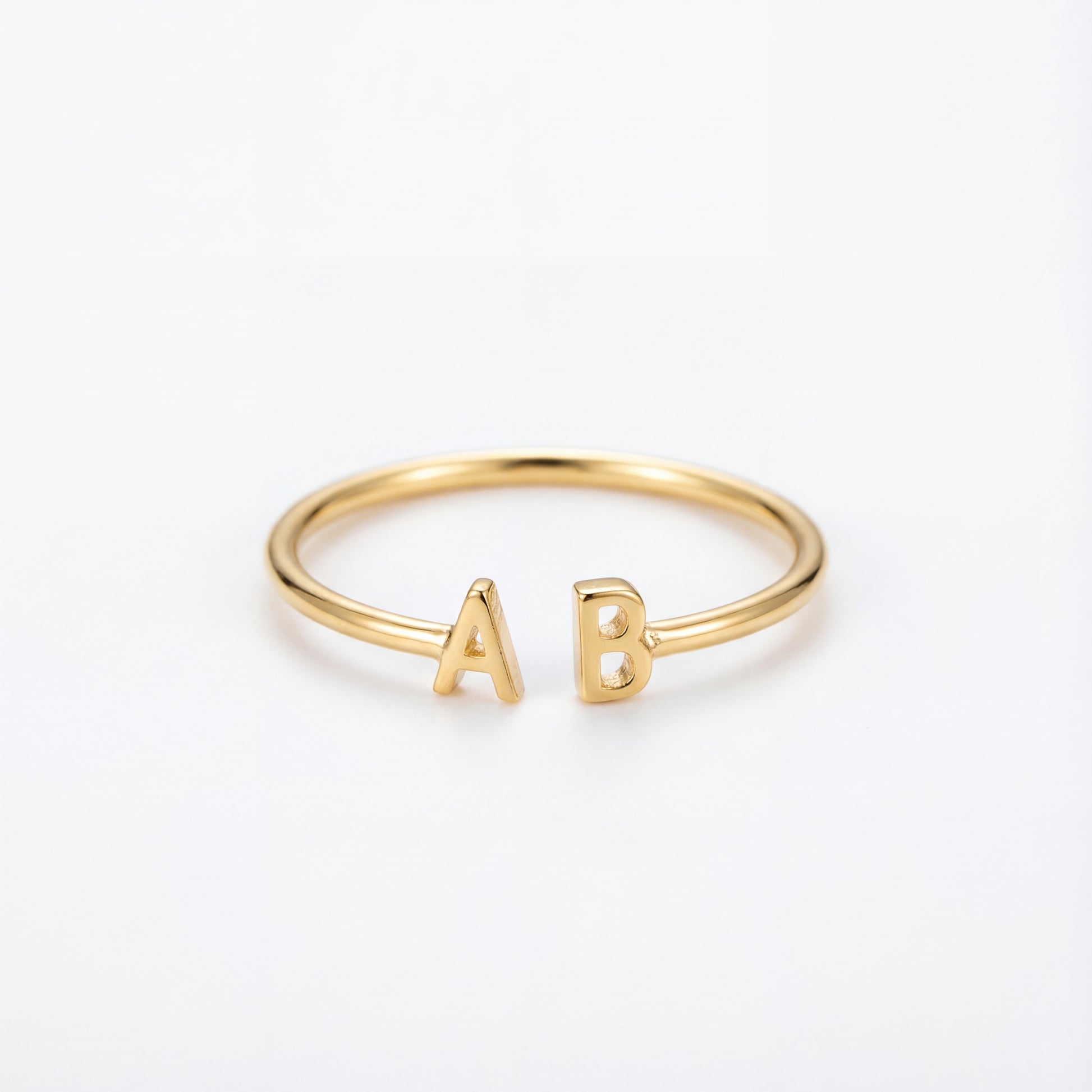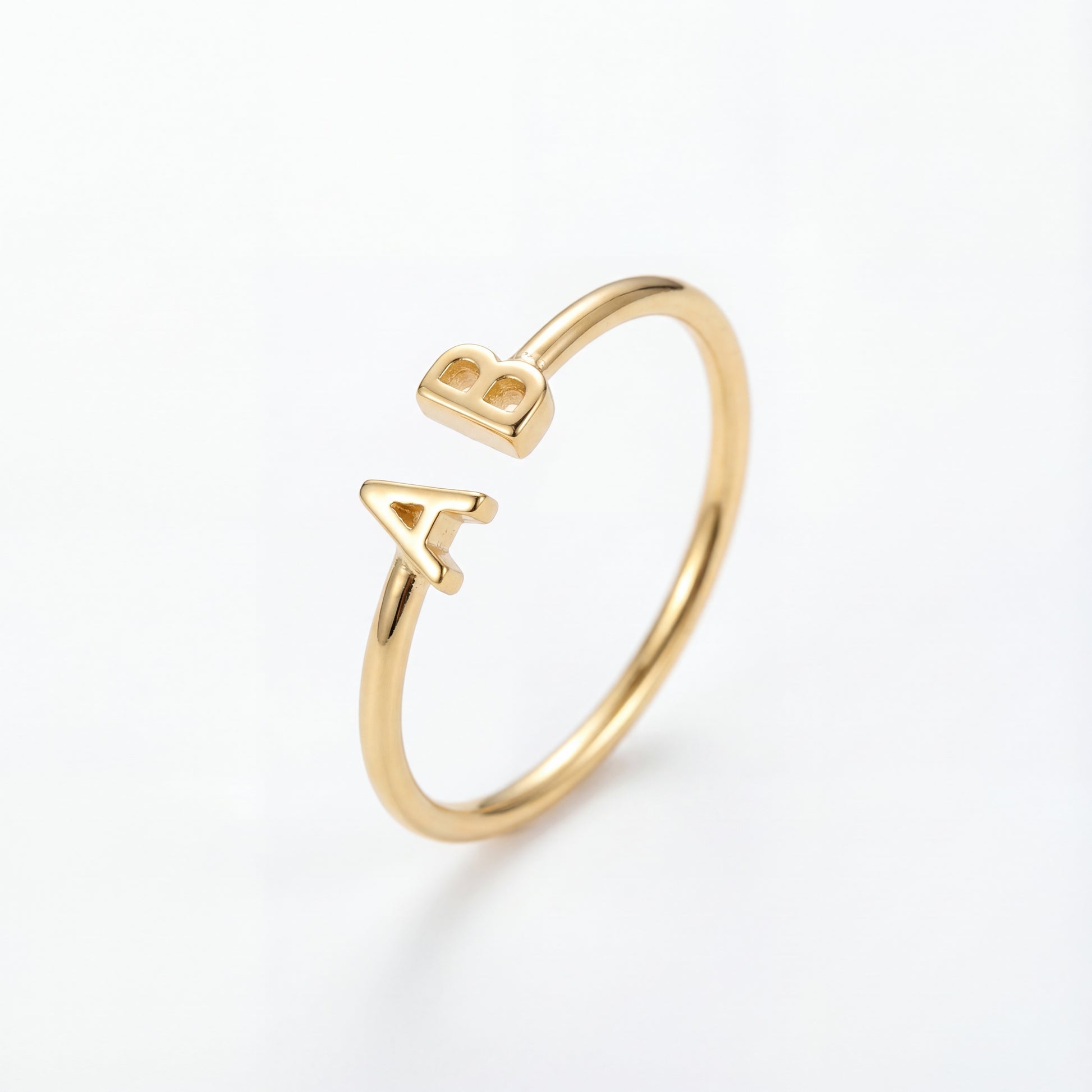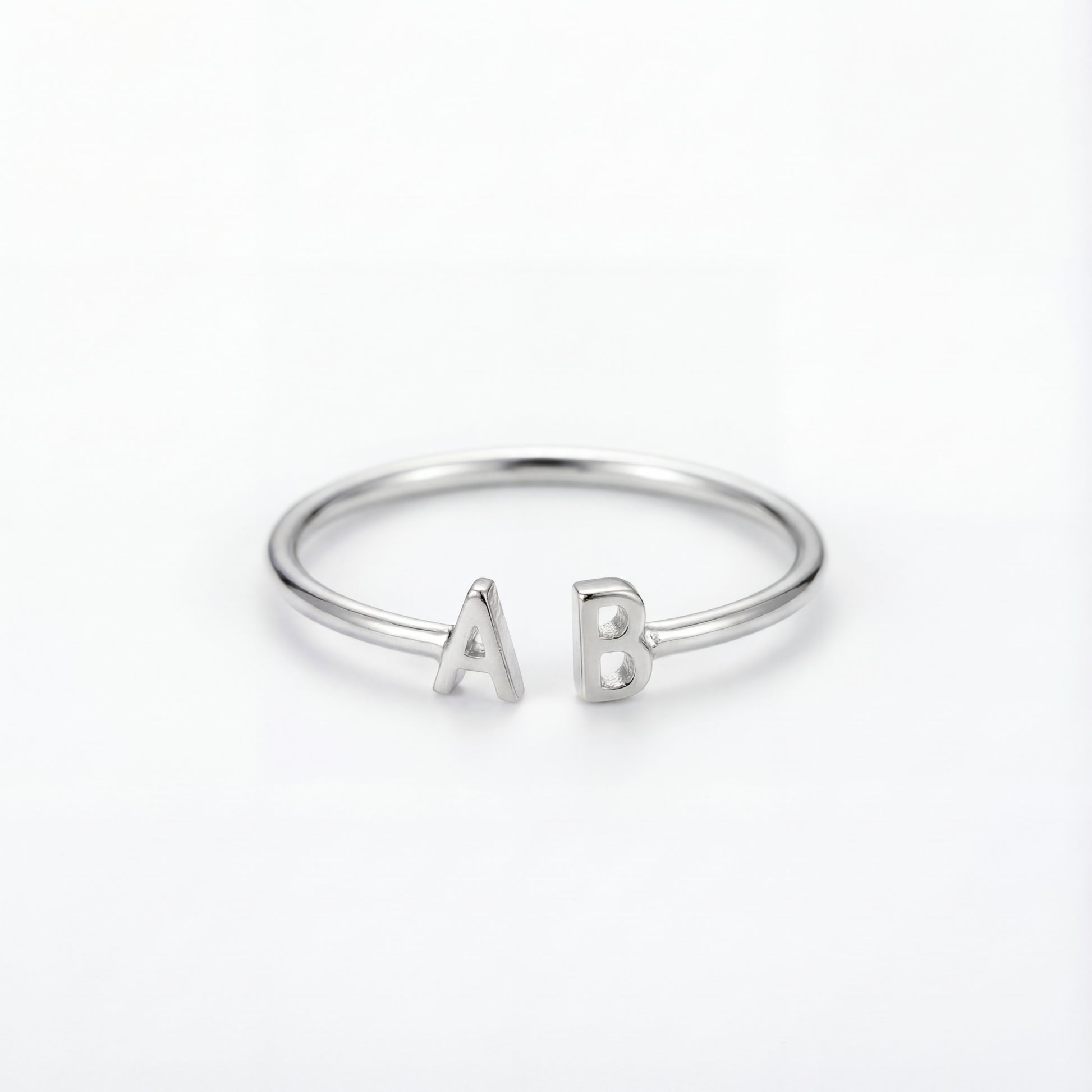 Denne elegante åbne ring fremviser to initialmotiver i hver sin ende, hvilket skaber et personligt statement-stykke. Den glatte børstede finish tilføjer moderne sofistikering.