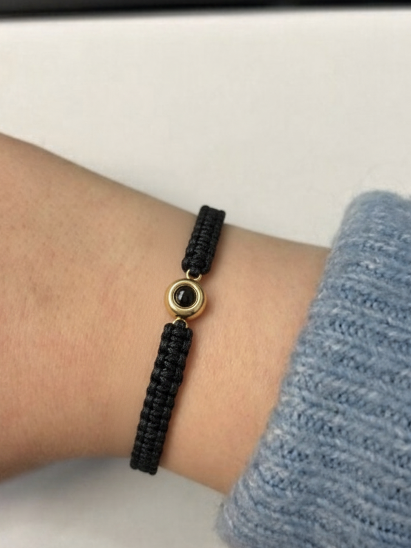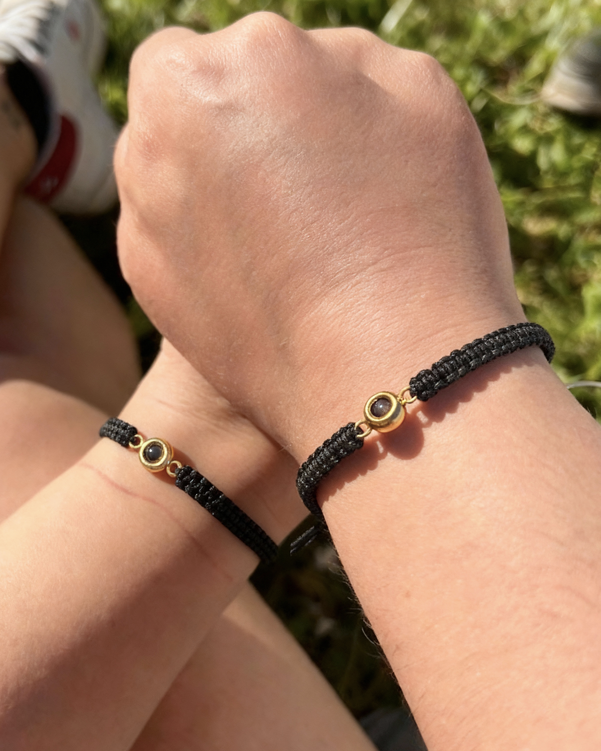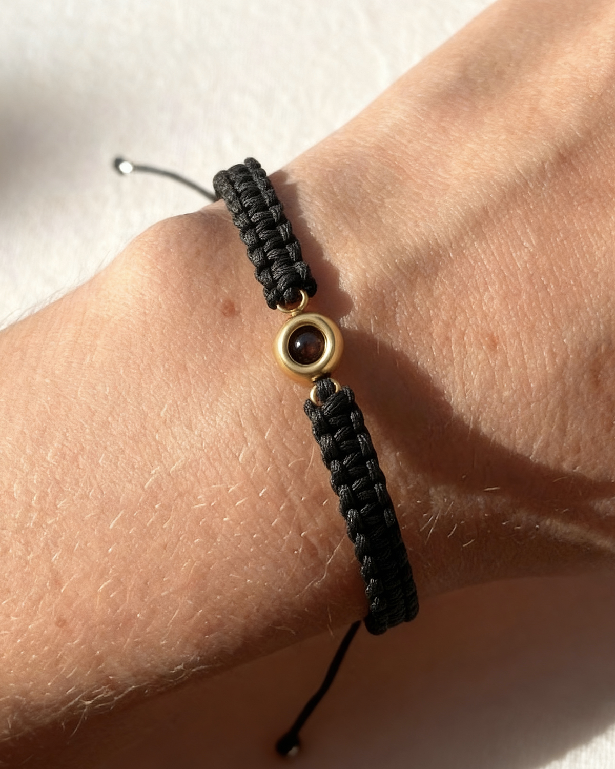 Et hemmeligt foto, afsløret af lys. Vores Projection Bracelets forvandler dit yndlingsminde til bærbar kunst. Den slanke vedhæng skjuler et personligt billede, der projiceres, når det belyses bagfra: et portræt, et øjeblik, en kærlighedshistorie.