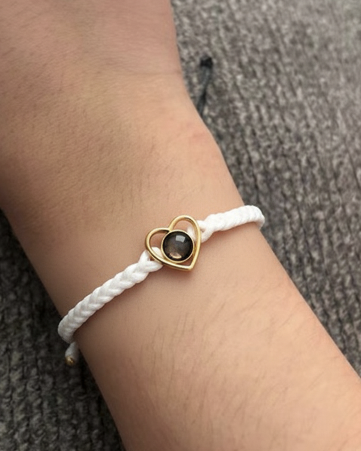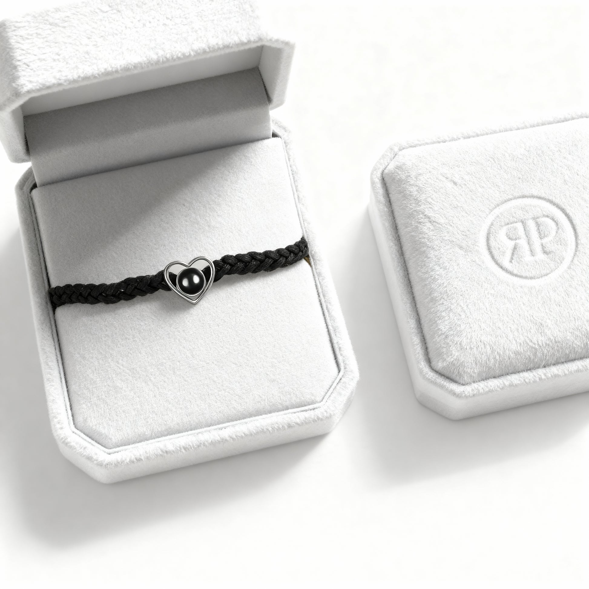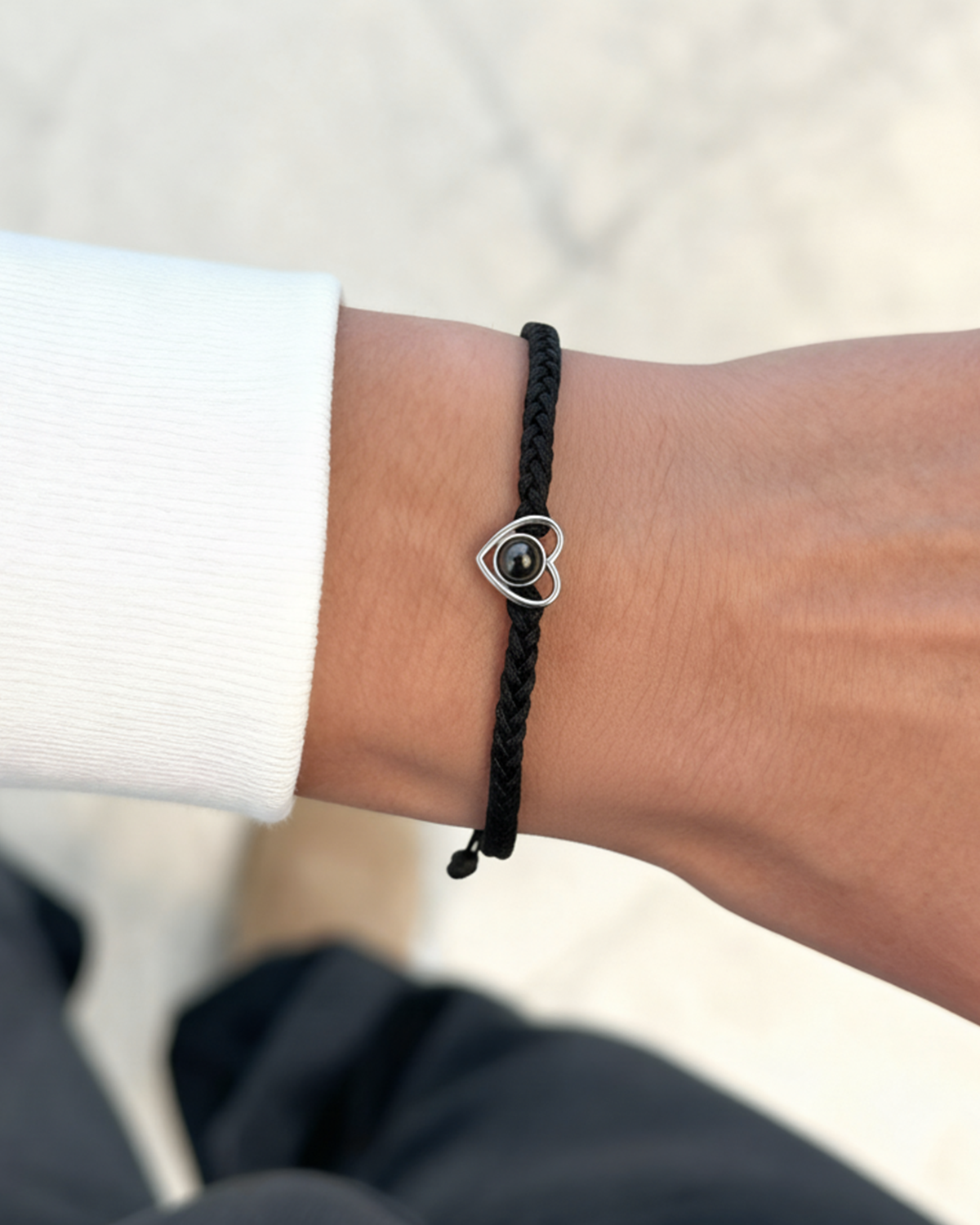 Et hemmeligt foto, afsløret af lys. Vores Projection Bracelets forvandler dit yndlingsminde til bærbar kunst. Den slanke vedhæng skjuler et personligt billede, der projiceres, når det belyses bagfra: et portræt, et øjeblik, en kærlighedshistorie.
