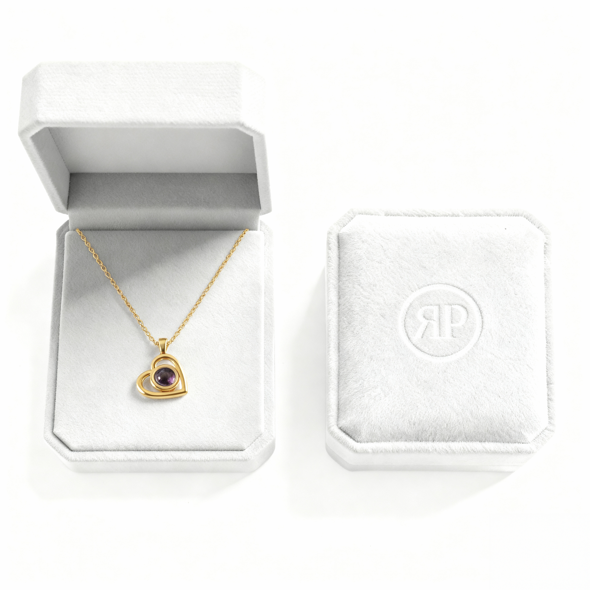 Et hemmeligt foto, afsløret af lys. Vores Projection Necklace forvandler dit yndlingsminde til bærbar kunst. Den slanke vedhæng skjuler et personligt billede, der projiceres, når det belyses bagfra: et portræt, et øjeblik, en kærlighedshistorie.
