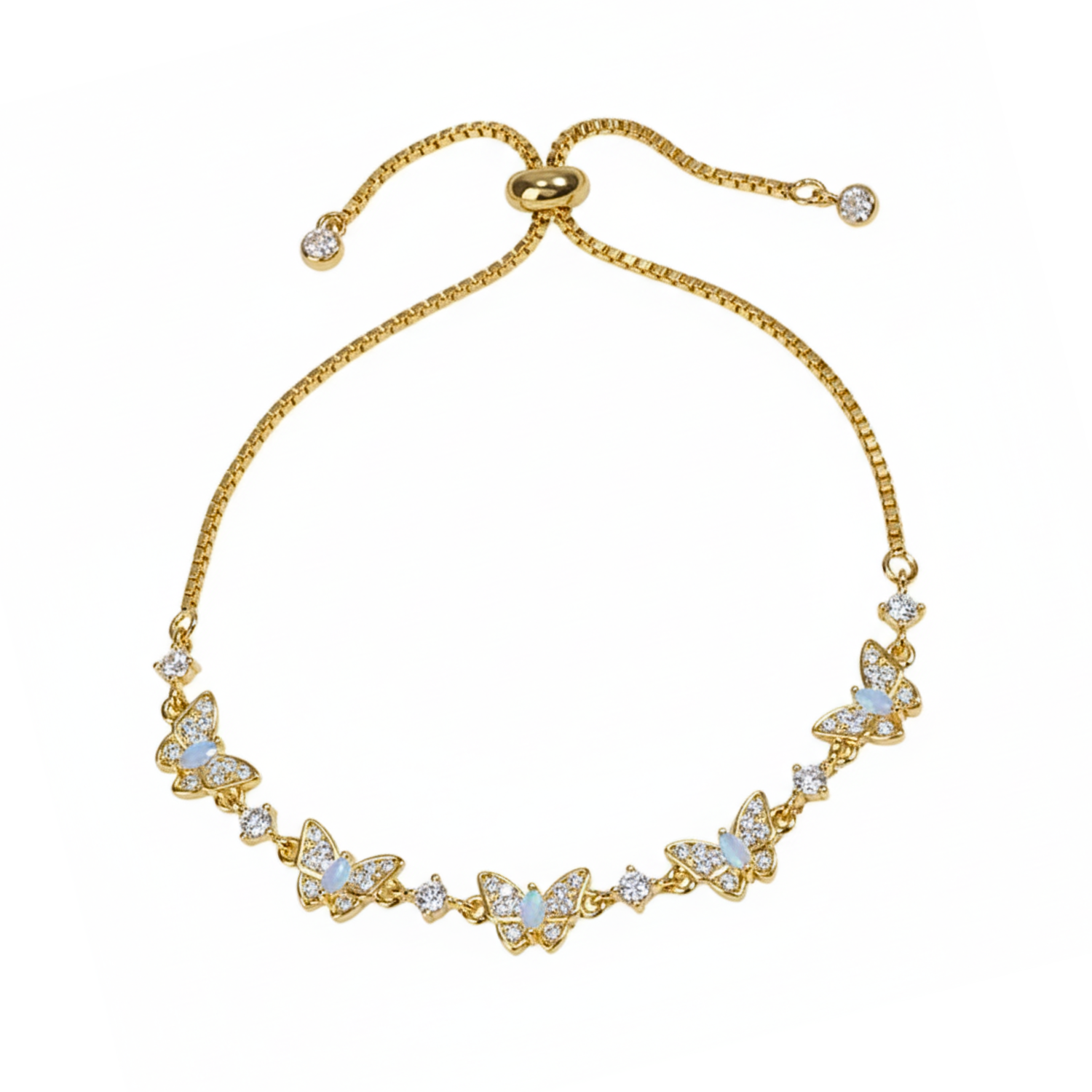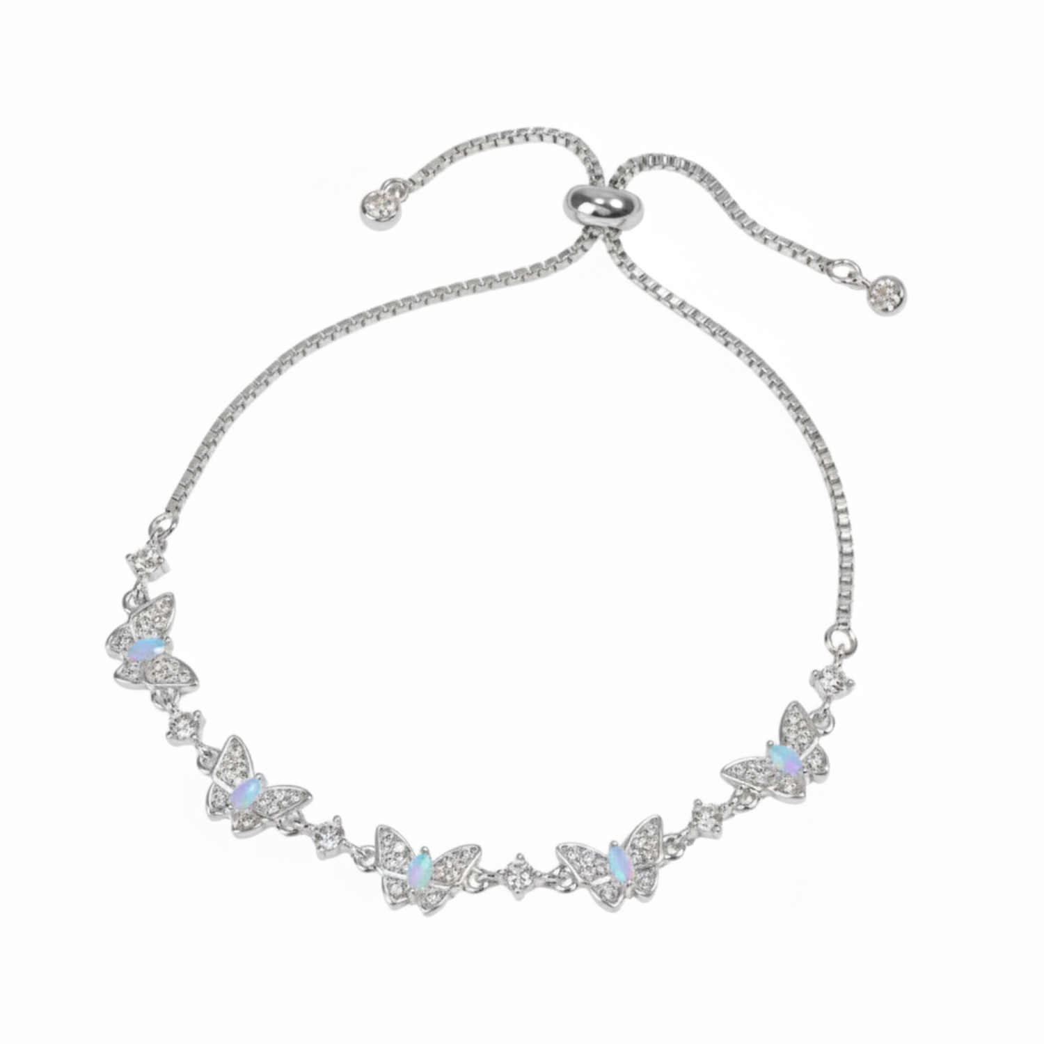 Lad dig fortrylle af delikatessen og glansen i Butterfly Glow-armbåndet, et raffineret stykke, der indkapsler ynde og lethed. Dets overdådige design fremviser udsøgte sommerfugle prydet med glitrende krystaller, der fanger lyset ved hver bevægelse for at oplyse dit håndled med en magisk glød.