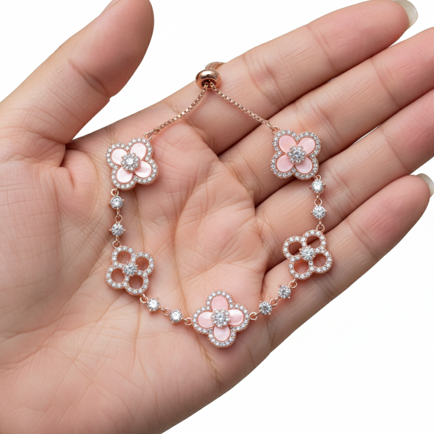 Dyk ned i en verden af forfinelse og delikatesse med Diamond Blossom, et overdådigt armbånd, der indkapsler den tidløse skønhed af strålende blomster. Hvert fint udformet kronblad fremhæves af glitrende krystaller, der fanger lyset ved hver bevægelse og oplyser dit håndled med en fortryllende glød.