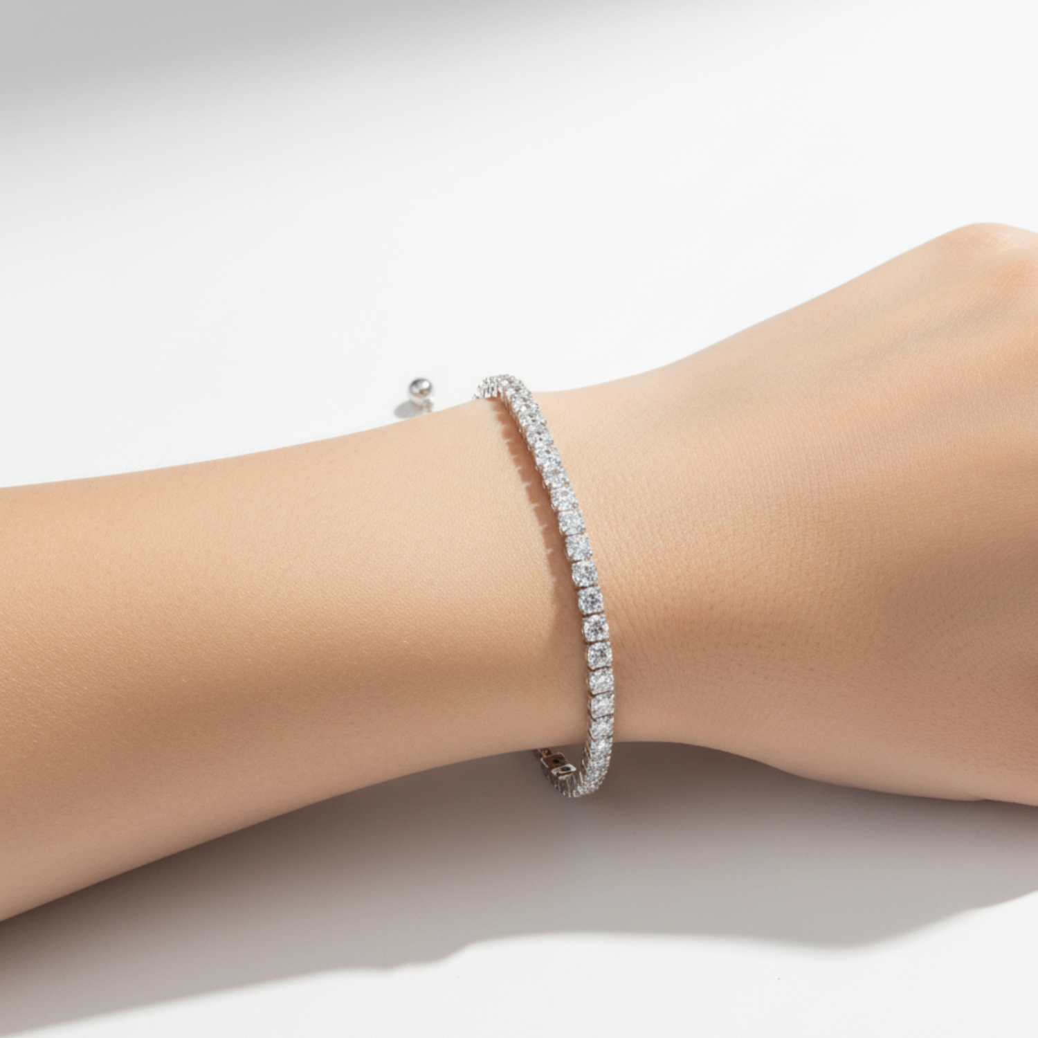 "Diamond" armbåndene udstråler en ren, lysende stil. Deres delikate design, fremhævet af et subtilt glimt, gør dem til de perfekte accessories til at fremhæve dine outfits, hvad enten det er til hverdag eller særlige lejligheder.