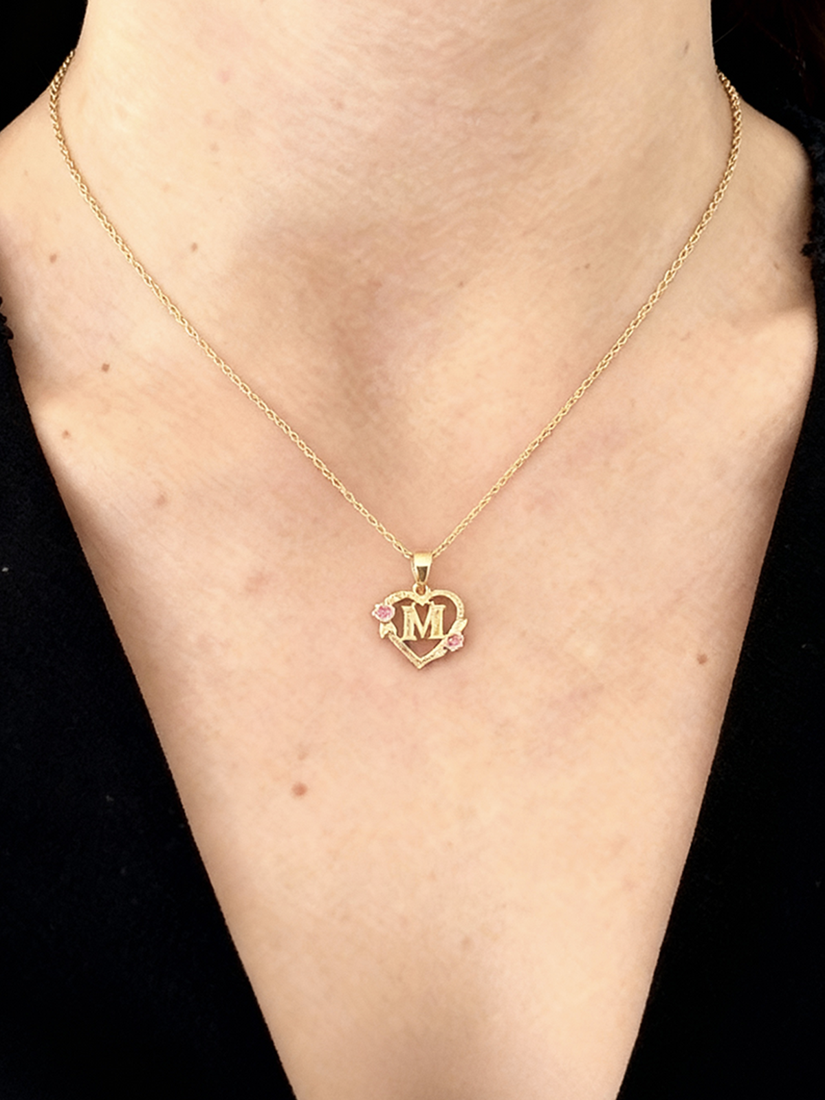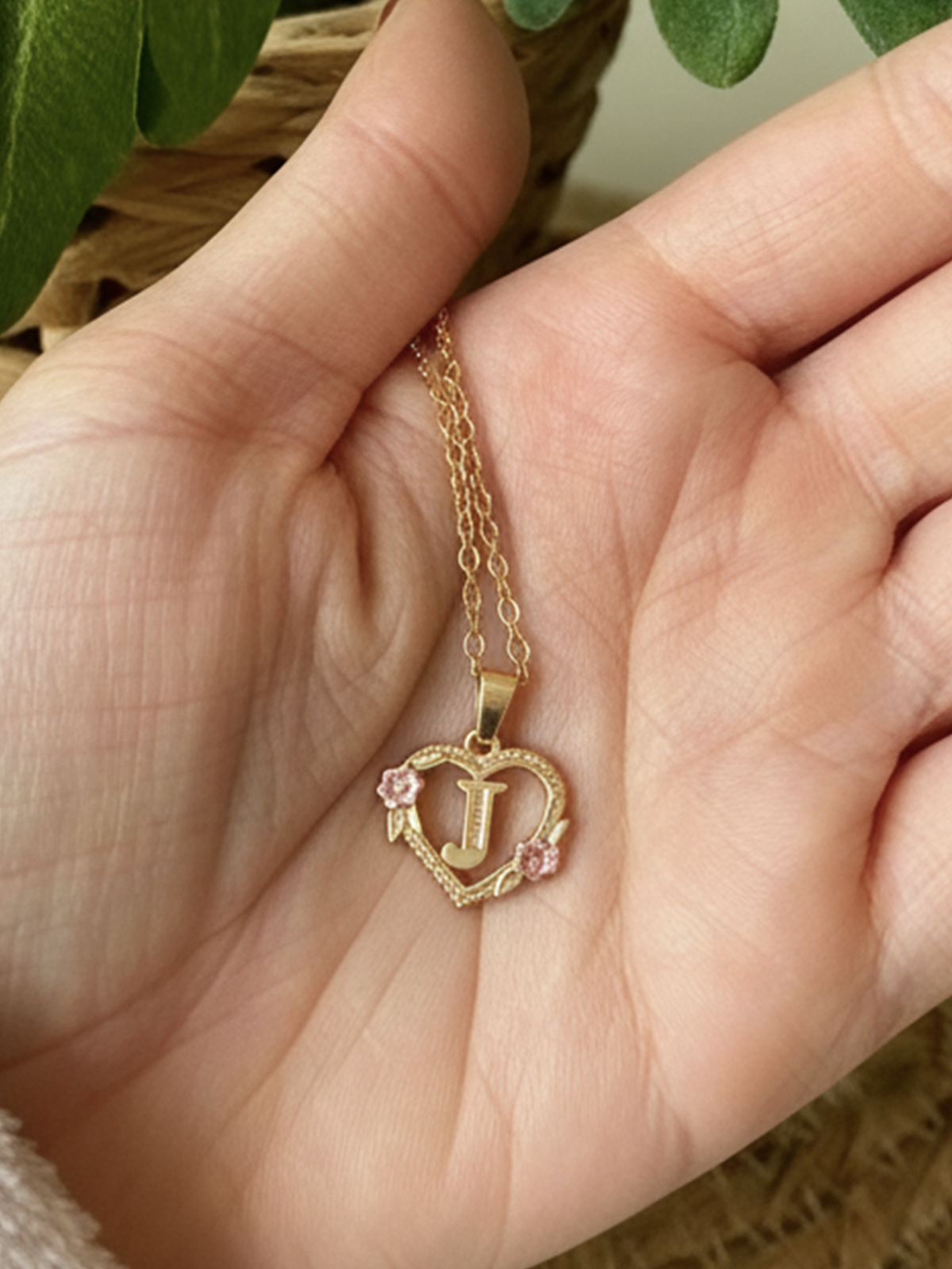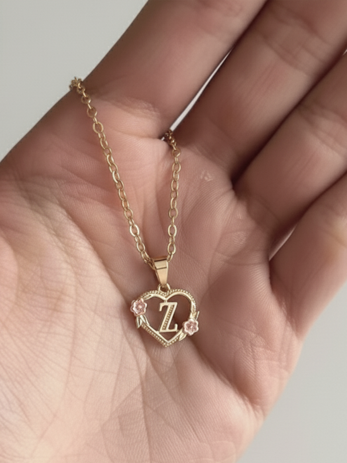 Golden Bloom-halskæden kombinerer stråleglansen fra et gyldent hjerte med blomsterblødhed i en komposition, der er lige så tidløs som følelsesladet. I midten ses en subtilt fremhævet initial, der symboliserer det, der er kært for dig. To pastelrosa emaljerede blomster blomstrer på vedhænget, som blide løfter hvisket i tidens øre.