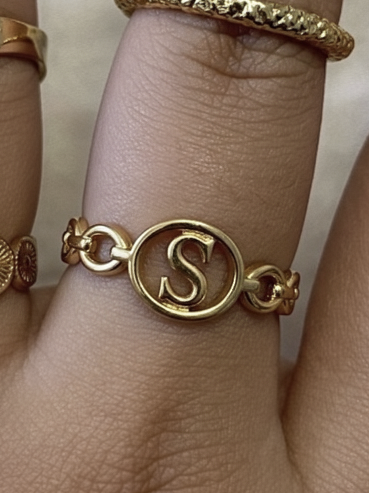 Vores initialring i guld eller sølv rustfrit stål er en subtil og raffineret hyldest til dit yndlingsbogstav, hvad enten det er dit eget navn, en elsket persons eller et meningsfuldt symbol. Dens udskårne design i form af en sammenflettet cirkel fremhæver hver initial med en moderne og tidløs stil.